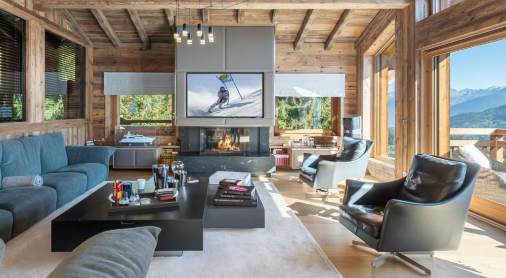Niché au Jaillet à Megève, ce chalet de 720 m² offre une vue panoramique sur les Alpes, à 300 mètres des pistes. Il accueille jusqu’à 12 personnes dans six suites. Piscine intérieure, jacuzzi extérieur et salle de cinéma complètent l’expérience.