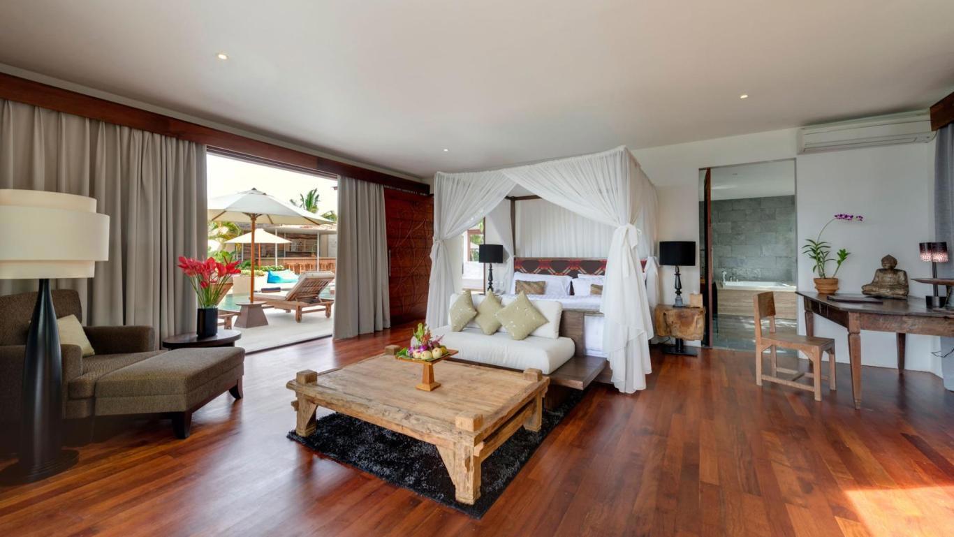 La villa comprend plusieurs pavillons indépendants abritant des chambres spacieuses avec salles de bain privées, chacune pensée pour garantir confort et intimité. Les espaces de vie sont largement ouverts, permettant de profiter de la brise marine et des vues imprenables.