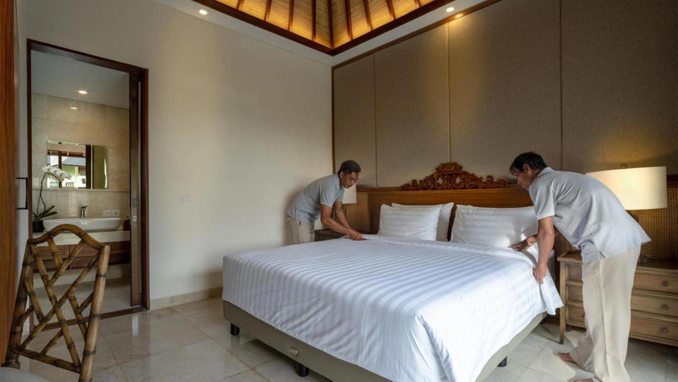 Ample et élégante, Villa Kailasha s’impose comme une des villas les plus prestigieuses de la côte de Tabanan. Dominant la mer, elle propose des volumes généreux et un art de vivre balinais raffiné où le confort moderne se mêle aux influences locales. Les neuf chambres, réparties dans plusieurs pavillons, permettent une intimité parfaite tout en favorisant la convivialité des espaces communs.